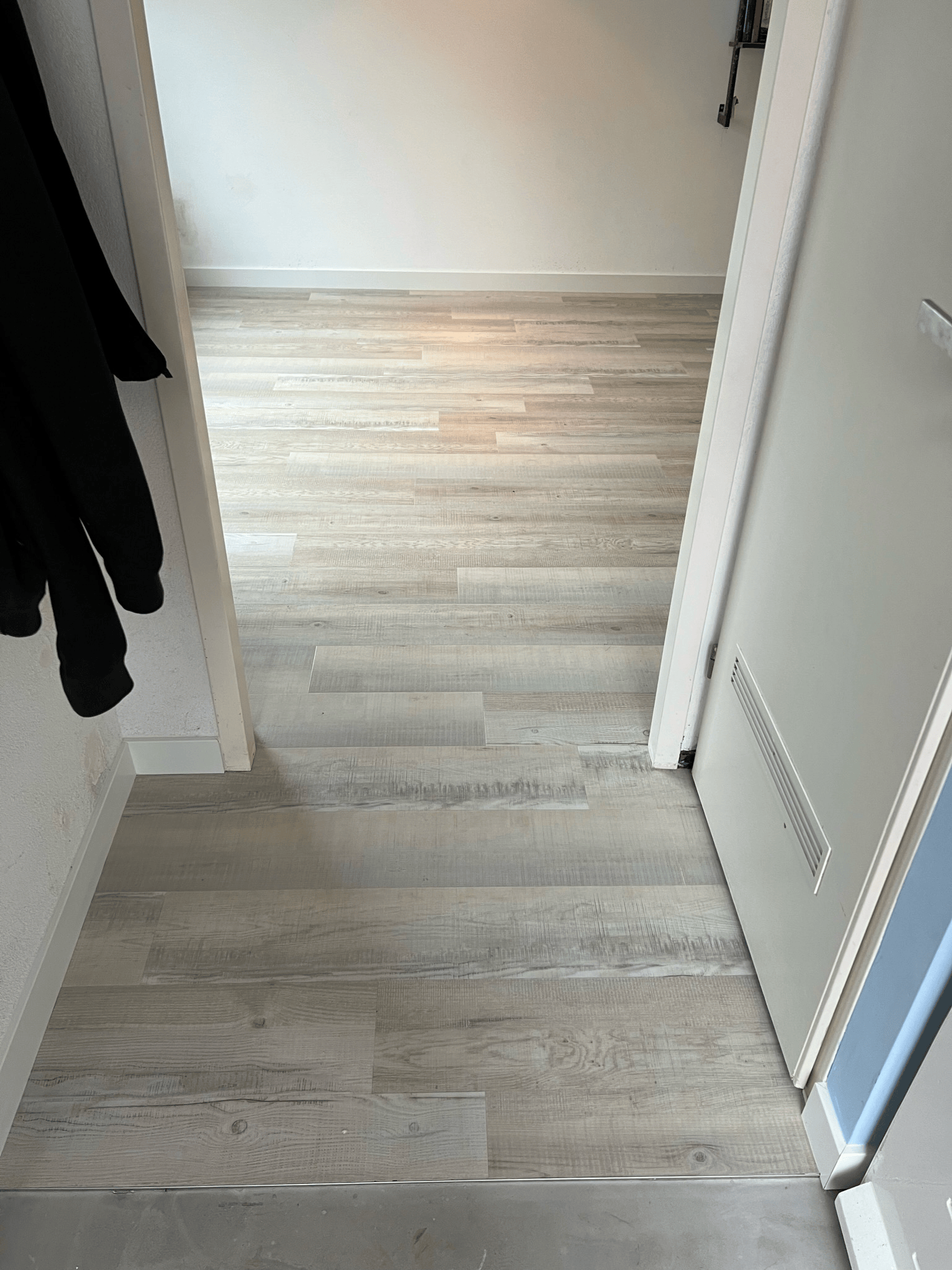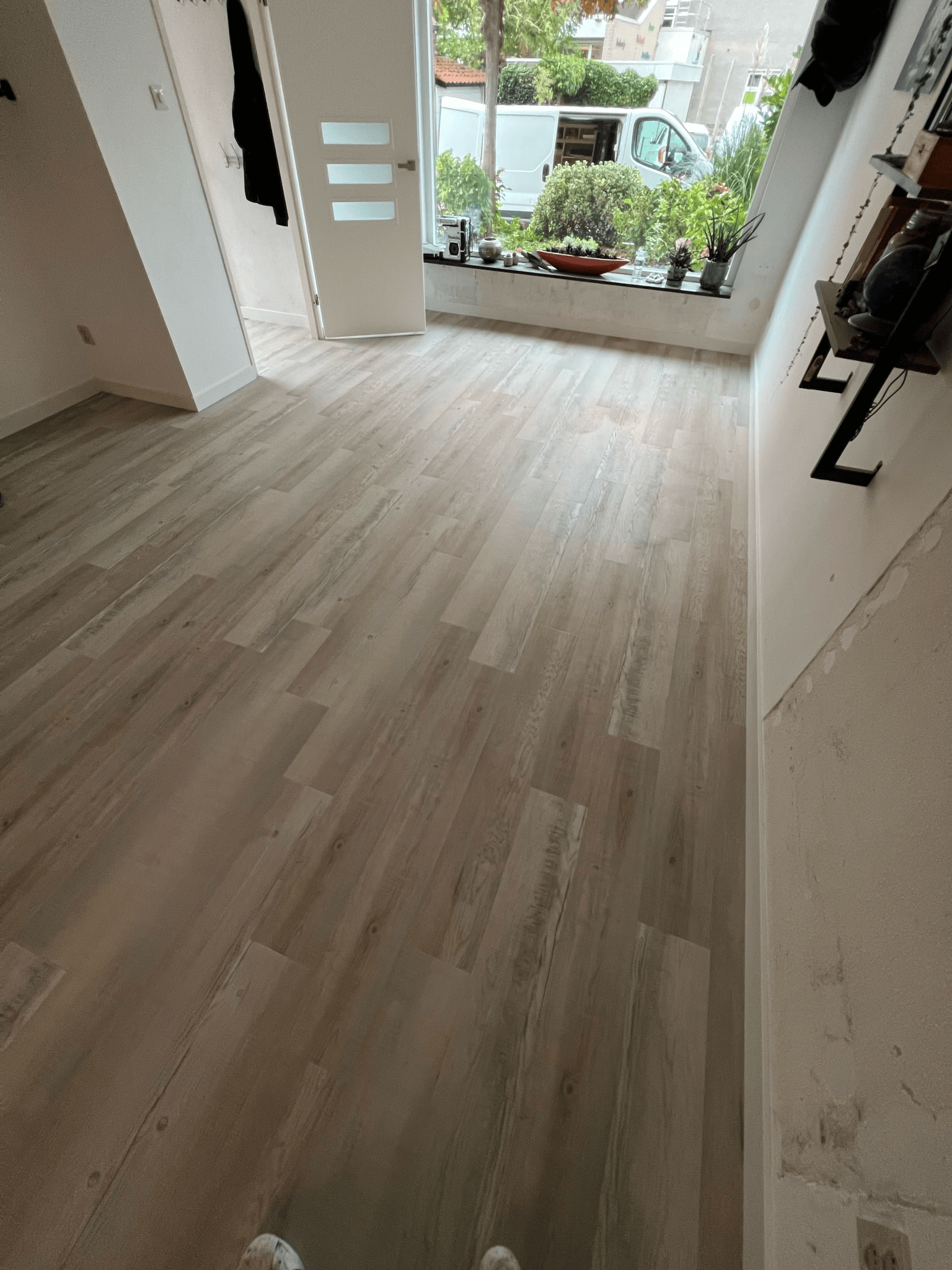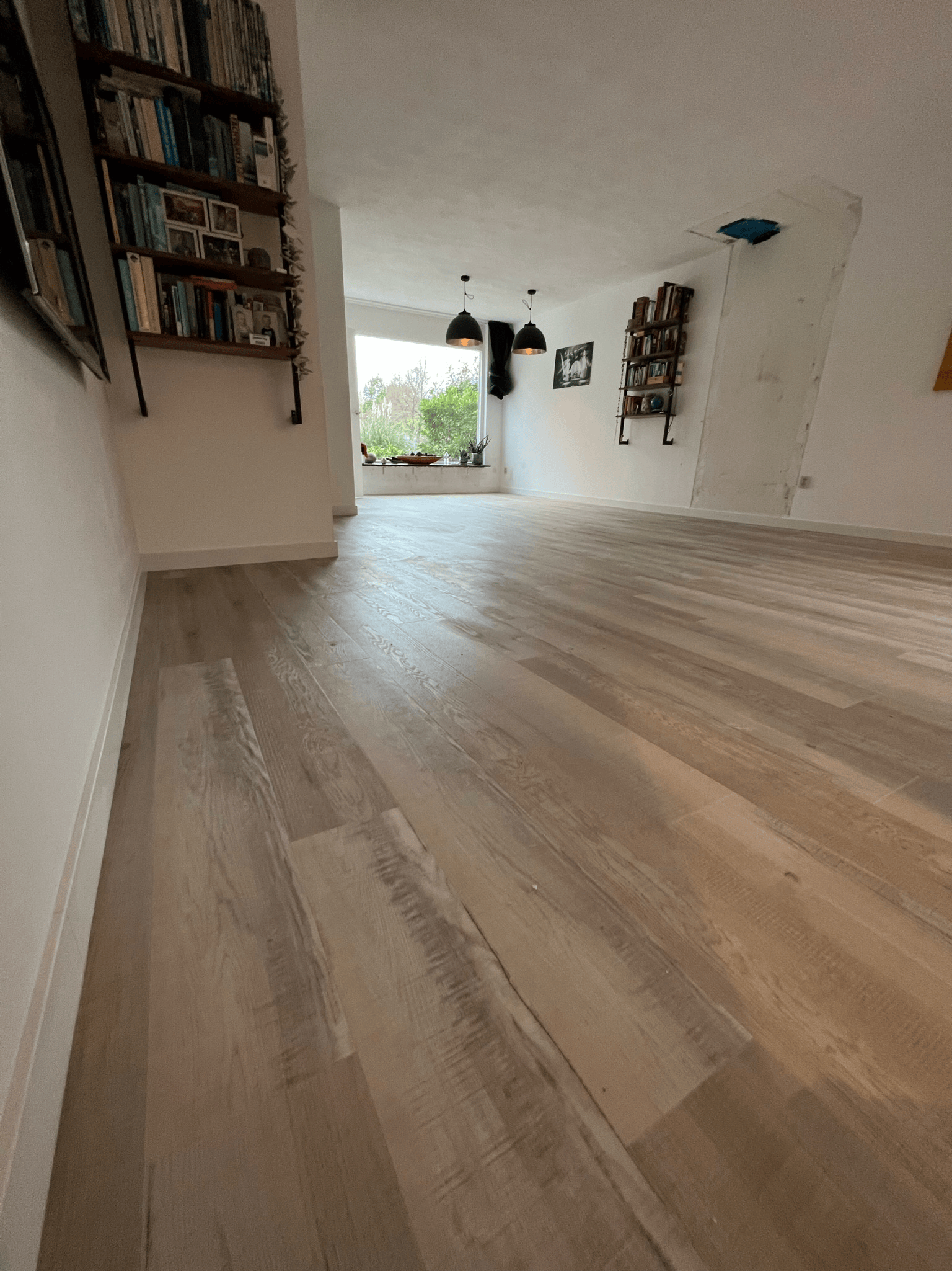In Woerden hebben we een pvc rechte stroken vloer doorgelegd in het hele benedenverdieping.